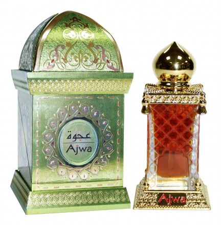 Ajwa – роскошный восточный унисекс парфюм, выпущенный арабским брендом люксовой парфюмерии Al Haramain Perfumes. Как и все духи, выпускаемые брендом, парфюм изготовлен из лучших ароматических ингредиентов и обладает очень долгим, шлейфовым звучанием. Традиционно масляные духи выпускаются брендом в коллекционных хрустальных флаконах, инкрустированных золотом. Роскошный масляный парфюм станет украшением любого женского или мужского образа, а его флакончик станет «изюминкой» любого туалетного столика или ванной комнаты.Ароматическая симфония начинает звучание с тонкой свежести зеленых нот, пряно-медового аромата нежной мимозы, терпковатых ноток жасмина и хрустящих, почти морозных цитрусовых акцентов. Сердце композиции дарит бархатисто-медовый аромат царственной розы, шелковисто-пряный запах ромашки и пряно-цветочный запах экзотического иланг-иланга. Легкая, чуть мерцающая аура волшебного янтаря придает центральному аккорду особую красоту звучания. Отзвучав, парфюм оставляет долгое послевкусие из волнующего мускуса и бархатисто-сливочного сандала с вкраплением пряных ноток шафрана и тмина.